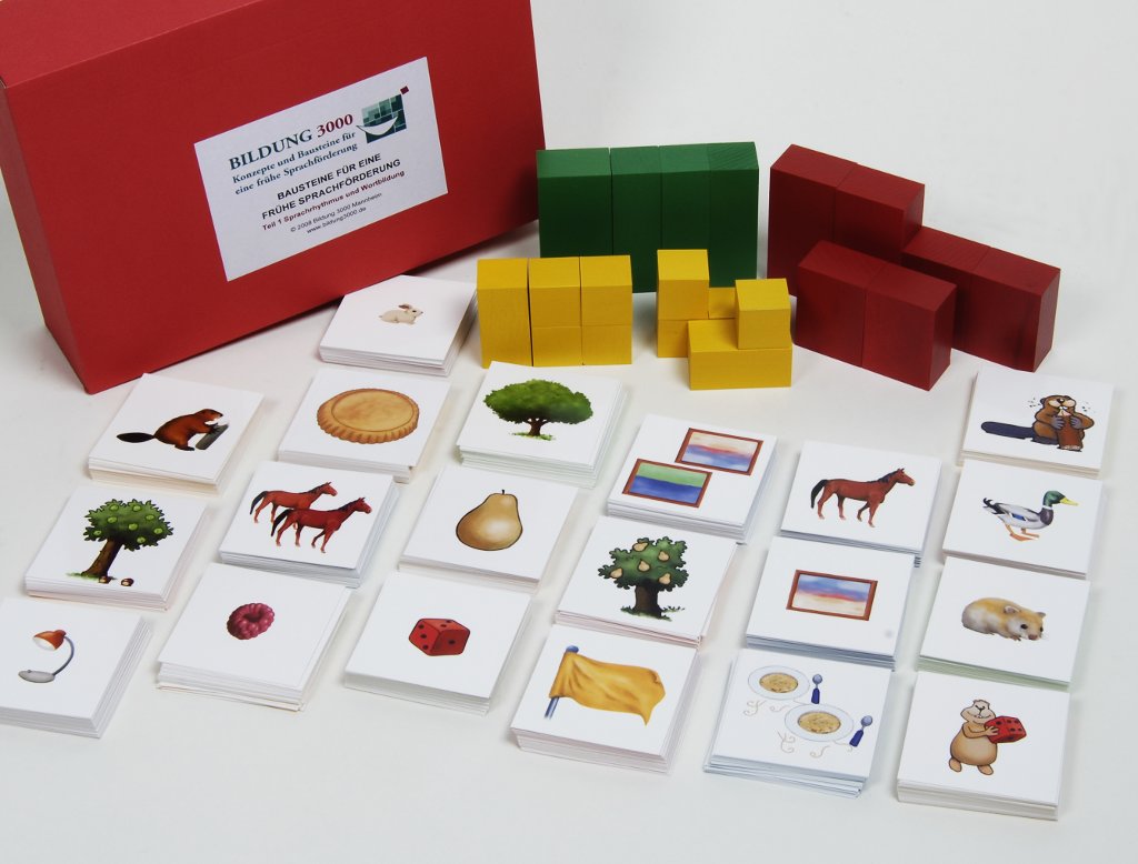 Handbuch (150 S. mit zahlreichen Abb.) mit 480 farbigen Bildkarten (8×8 cm laminiert) und 20 farbigen Holzbausteinen zur Silbendarstellung. 1. Aufl. 2008119,80 € (inkl. MwSt., zzgl. Versand)